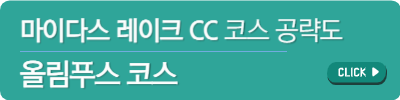올림푸스 코스는 아폴로 신의 이름이 붙은 4번홀(파4)이 어렵습니다. 화이트티 기준 370m로 긴 데다 해저드를 넘겨 티샷을 해야 합니다. 1번 홀(파4)을 지나 2번 홀(파4)에 들어서면 좌 도그렉 홀로 그린이 보이지 않습니다. 오른쪽 페어웨이에 공을 떨어트리고 해저드를 건너 세컨드 샷을 하는 코스입니다.